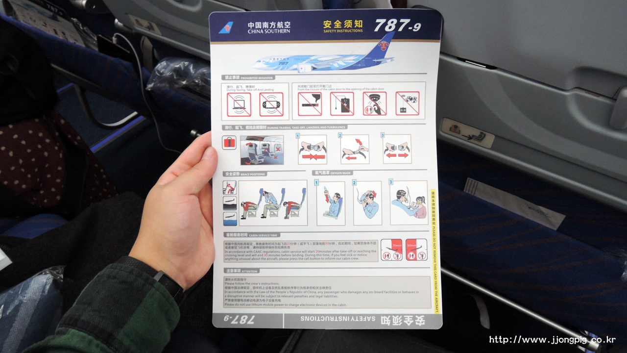 Boeing 787-900 기종에 맞는 내용이 들어가 있다. 혹시나 바다에 이쁘게 빠졌을 때 맨 뒷자리로도 탈출이 가능하다고 나온다. Boeing 737-800 기종은 불가.