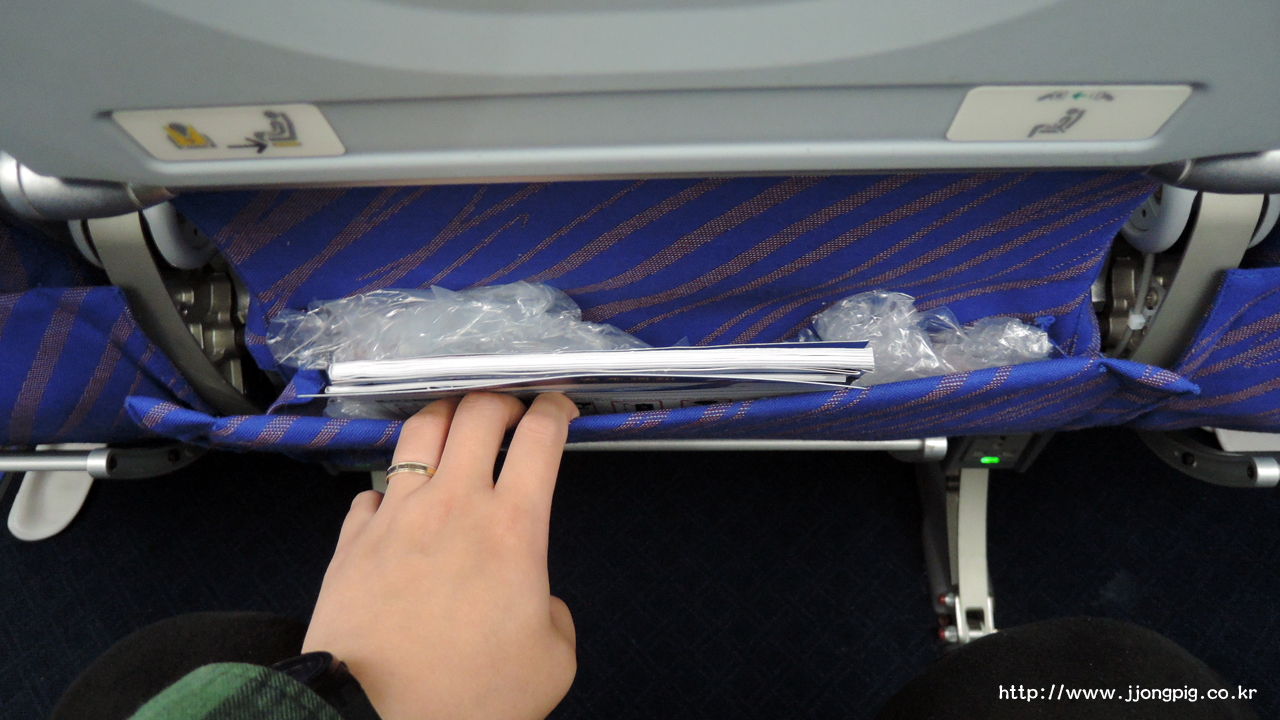포켓에는 항공사 기내지와 Safety Card가 들어가 있다.