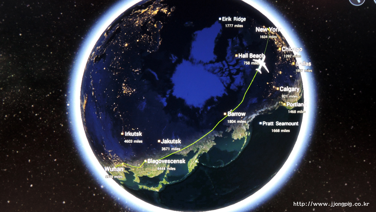 과거 냉전 시대를 지나 북극을 거쳐서 갈 수 있는 항로까지 열리다보니 싱가포르, 홍콩, 광저우 등에서 뉴욕까지 논스톱으로 가게 된다는 것을 직접 실감하게 된다. 이 북극항로가 아니었으면 논스톱 비행은 현실적으로 불가능했을거라고 본다. 다만 북극항로는 우주방사선 노출의 문제가 있다보니 너무 자주 다니게 되면 건강에 좋을 수는 없지만, 승무원 못지 않게 그렇게 자주 다닐일이 있을것 같지는 않다. -.-