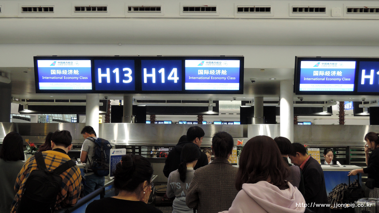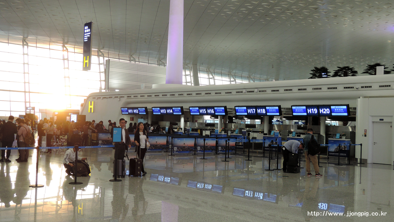 출발층은 더 현대적으로 느껴진다. 아일랜드 별로 알파벳이 붙어있는데, 보통 중국남방항공의 국제선 수속은 H 카운터 (H11~H20)쪽에서 담당하고 있었다.