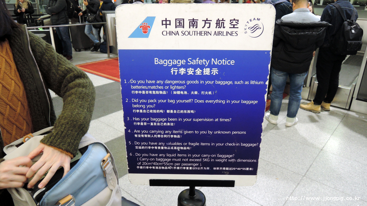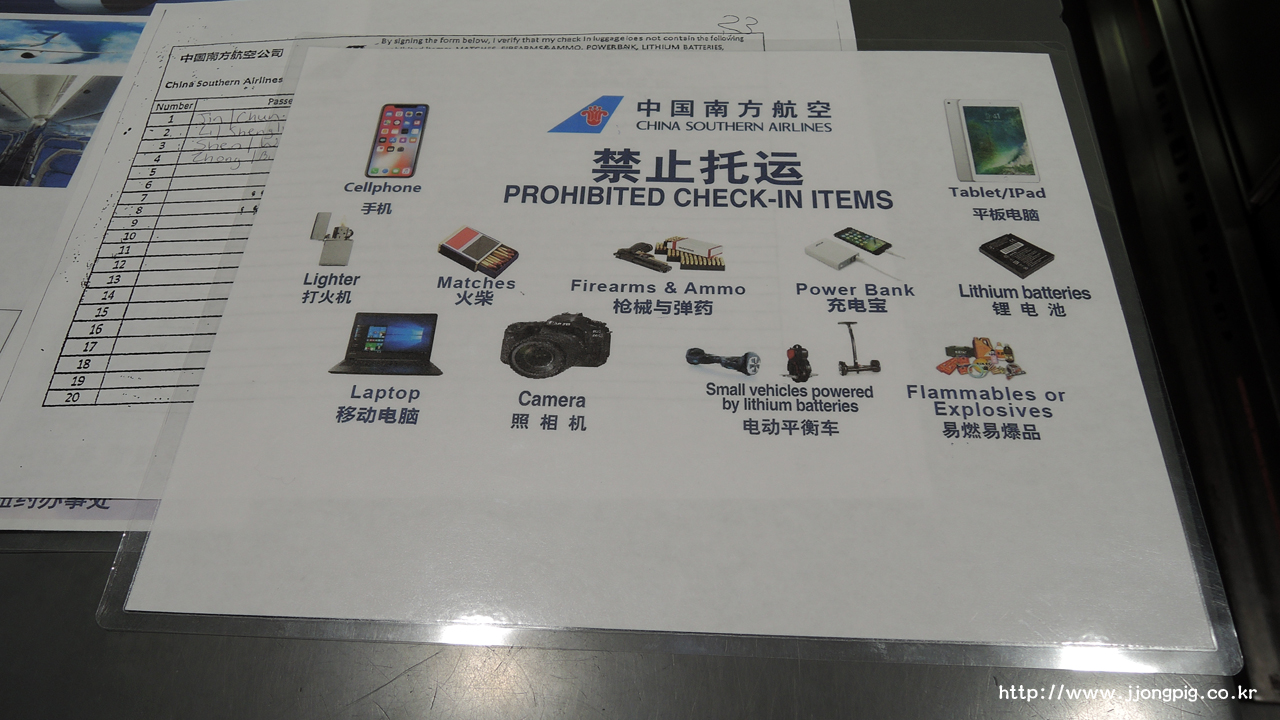중국남방항공 홈페이지에는 그런 안내도 없었고,