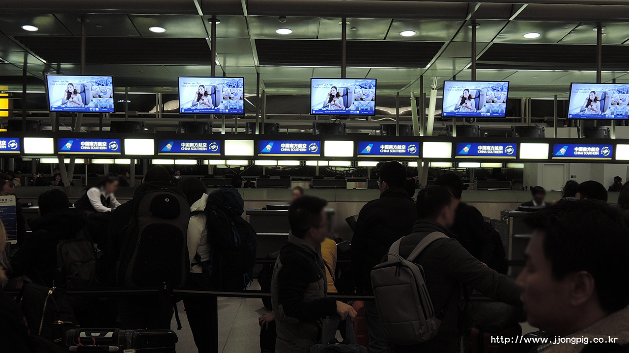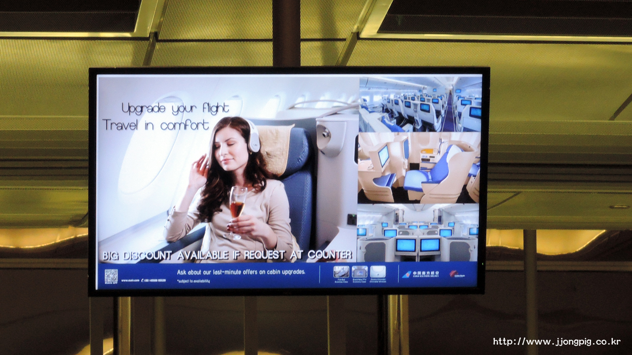 체크인 카운터에서 좌석 업그레이드에 대한 광고가 계속 나온다. 또한 위탁수하물로 부치면 안되는 물품들이 계속 안내되고 있었다.