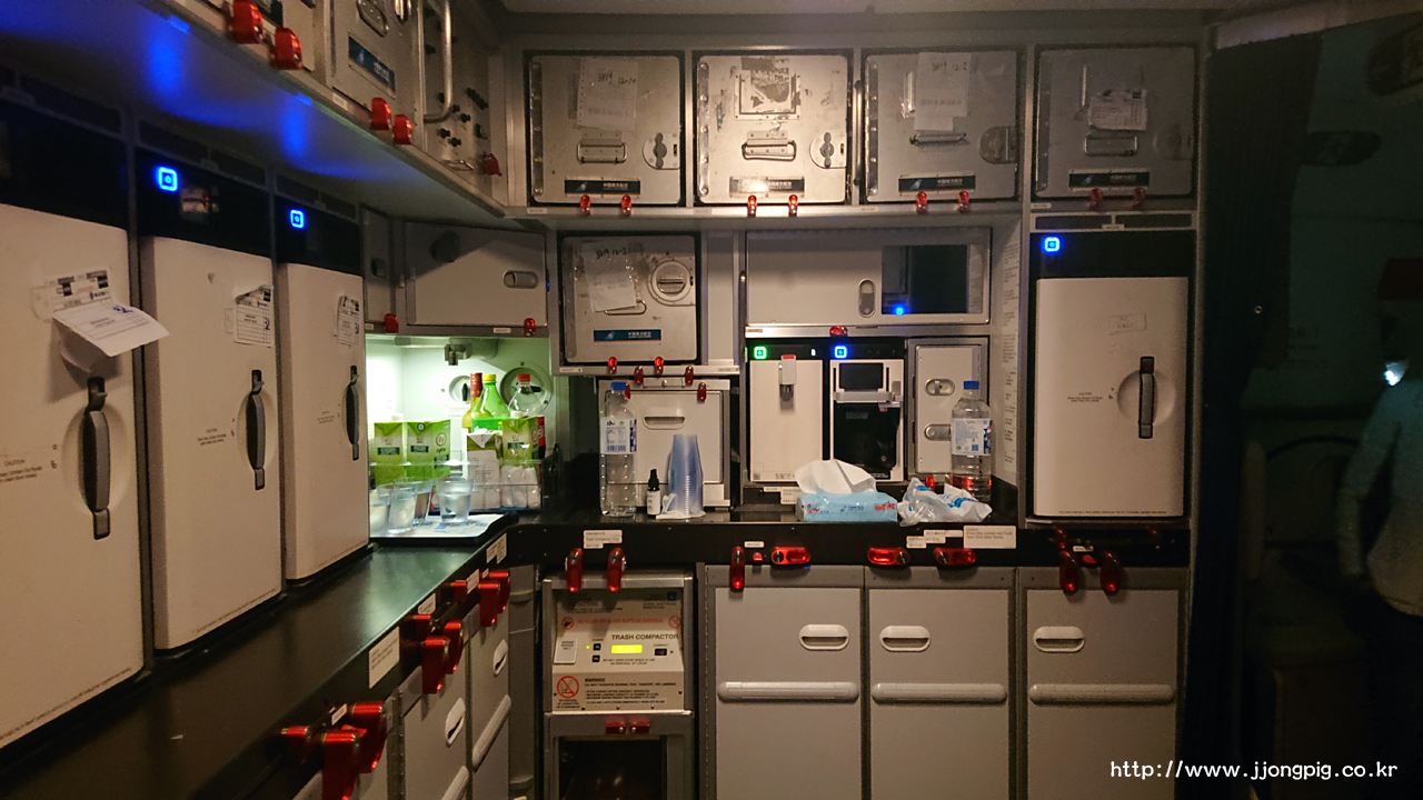 잠시 갤리구경을 했다. 승무원분이 열심 이것저것 하고 있는데, 그래도 주변 승객들이 말을 걸거나 질문 하는 부분에 대해서 짜증없이 대응을 잘 하신다. 갤리에서는 중간에 샌드위치나 음료 등을 마실 수도 있는데, 어떤 승객은 생수 페트병 큰거 하나를 요청해서 그냥 받아가기도 했다. -.-