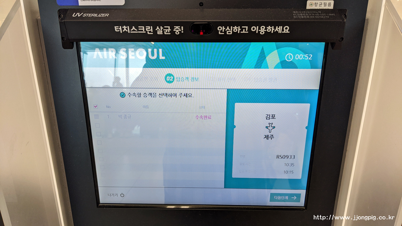 에어서울 카운터는 저~~~~~~~~~~~~~~~끝에 위치하고 있지만, 위탁수하물을 부치지 않고 셀프체크인 기계를 통하면 근처 가까운 곳에서 탑승권 출력이 가능하다.