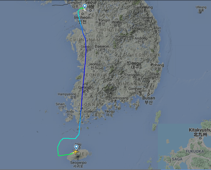 김포에서 광주까지는 잘 날아갔는데, 제주도에서는 트래픽이 많았는지 삥 돌아서 제주공항으로 향했다.