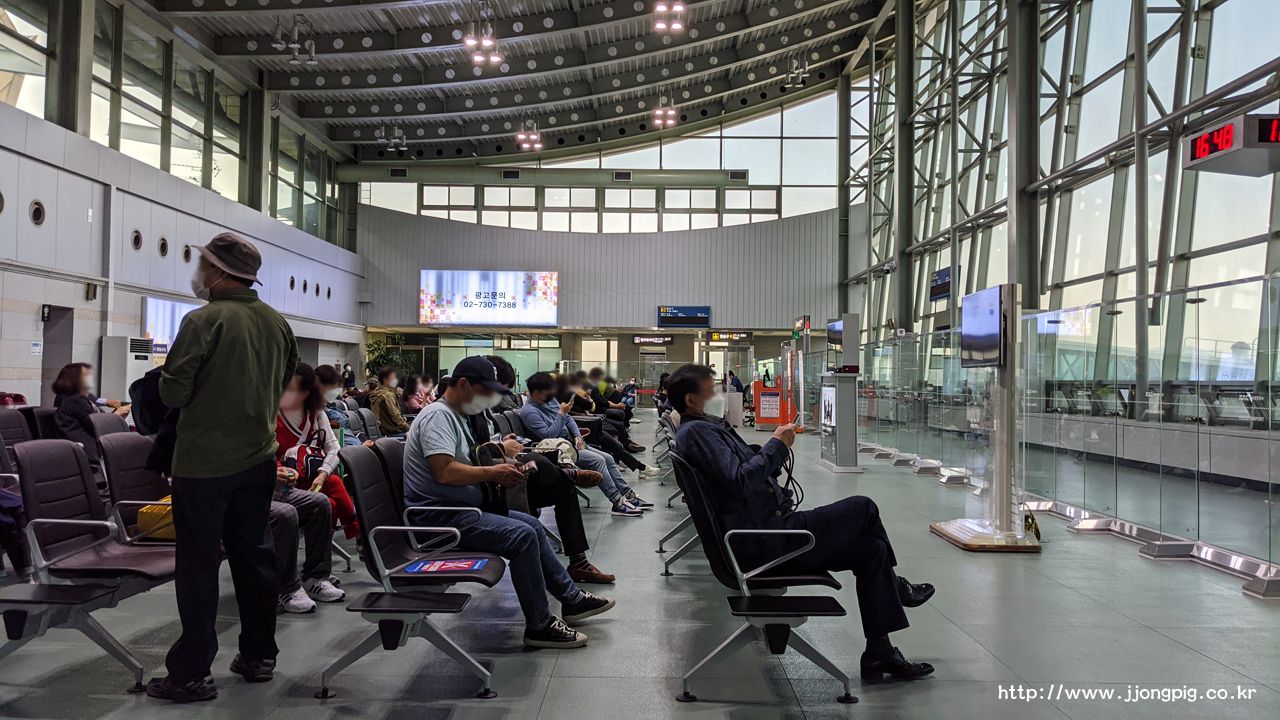 출발이 1시간 넘게 남았는데도 생각보다 많은 사람들이 앉아서 기다리고 있다.
