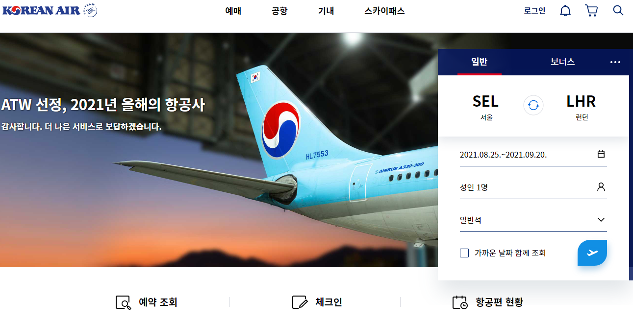 1. 대한항공 홈페이지 접속 (https://www.koreanair.com/)