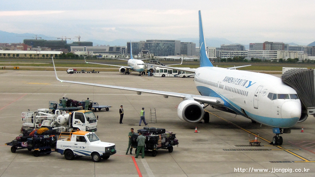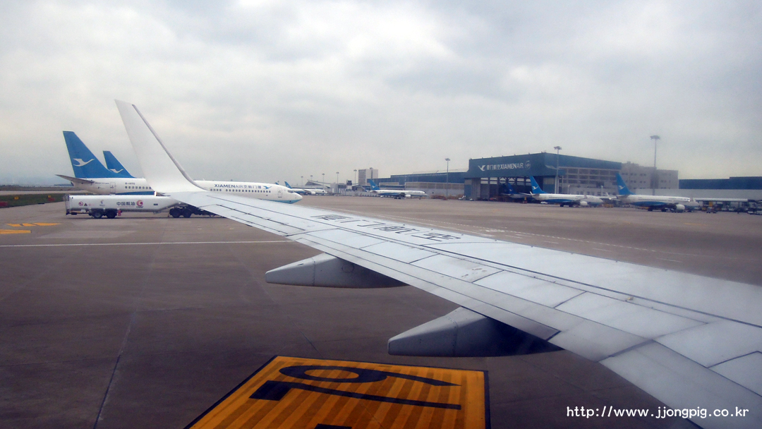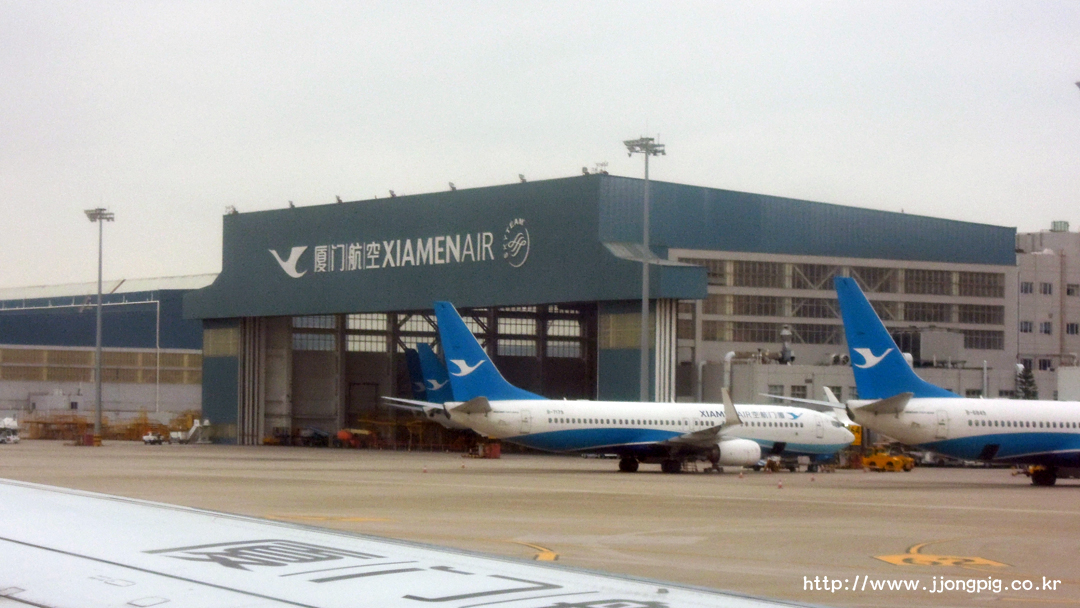 뭔가 도시는 도시인데 뿌연 공기가 보이면서 약간의 강과 바다 그리고 큰 대교가 보이는 순간 바로 공항에 착륙한다. 샤먼 공항이 여객기에서 화물기 개조하는 공장이 있어서 유명한데 이 날도 여러 화물기로 변신을 기다리는 여러 여객기들을 볼 수 있었다.