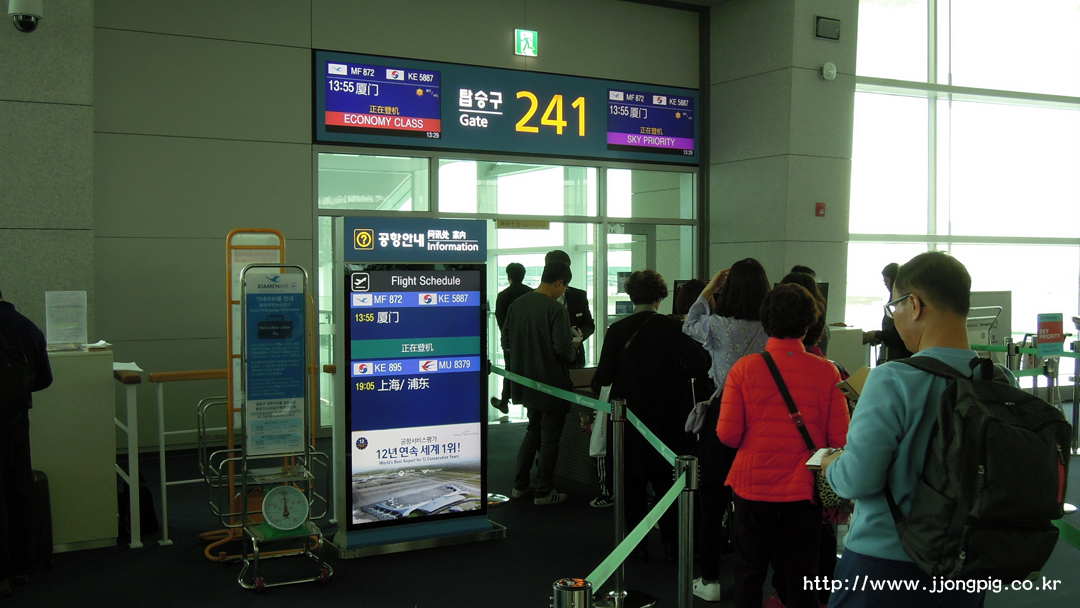 인천공항 제2터미널에 도착해서 C영역의 35~39번 카운터를 찾아가면 된다. 샤먼항공 오픈 전에 인도네시아의 가루다 항공이 사용을 하고 있었는데, 너무 빨리 도착한 손님들은 가루다 항공사 카운터에 샤먼항공 수속을 하는 경우도 종종 보인다.