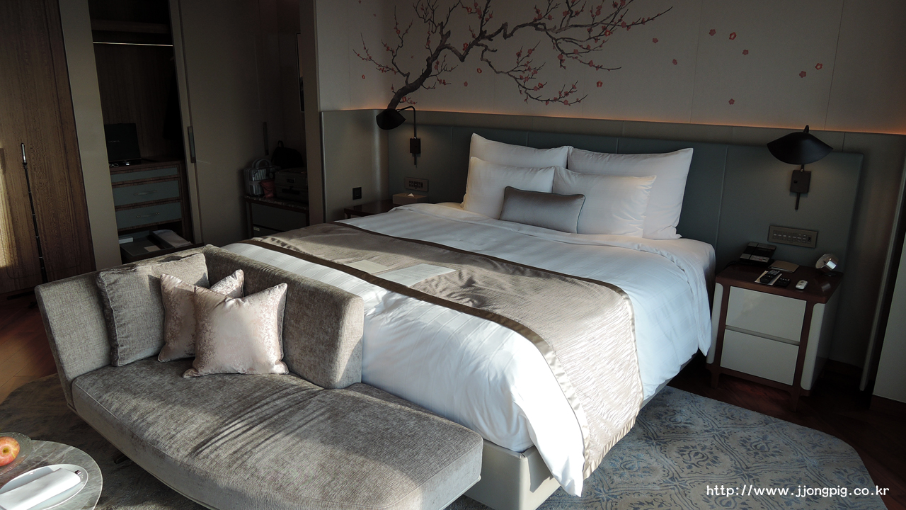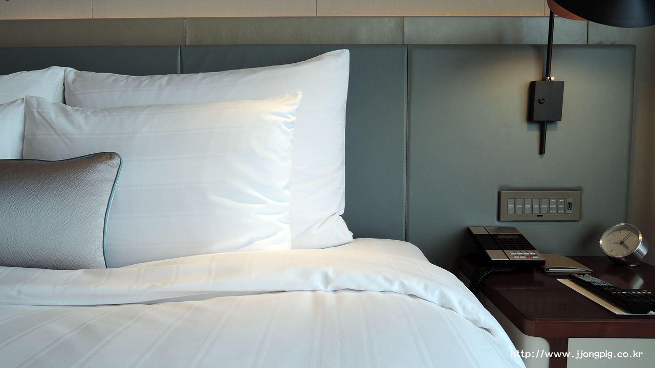 객실 내의 침대는 더블룸인데, 그랜드 디럭스 등의 기본 룸타입에서는 방이 좁아서 그런지 트윈룸 선택이 안되는것으로 알고 있다. 개인적으로는 바닥에서도 잘 자는 스타일인데 침대에 누우니까 정말 진짜 숙면을 취할 수 있겠다 싶을 정도로 확실히 느낌이 달랐다.