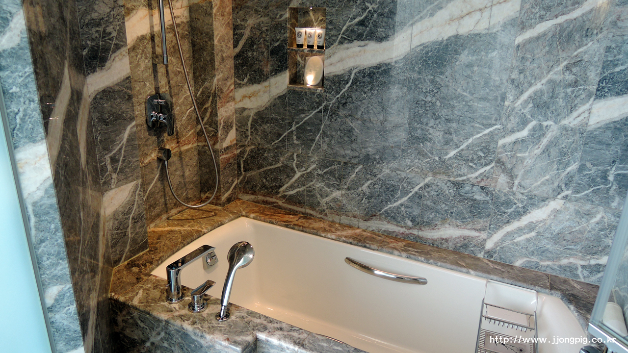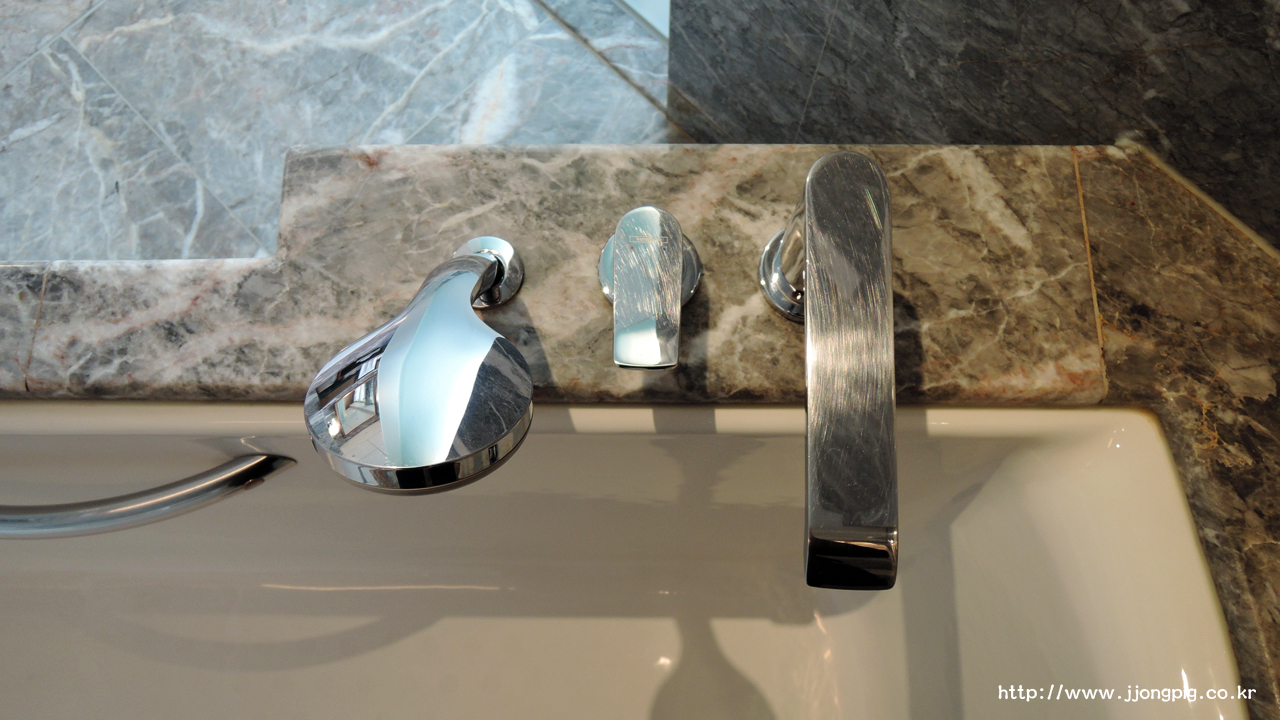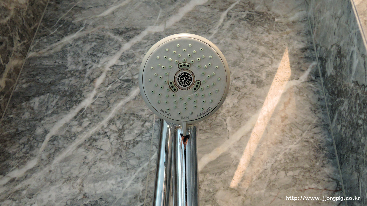그리고 욕조가 많이 미끄러운데, 손잡이는 낮은 위치 뿐이고, 바닥은 대리석이라 넘어지기 쉽다. 그래서 많이 조심해야 한다.