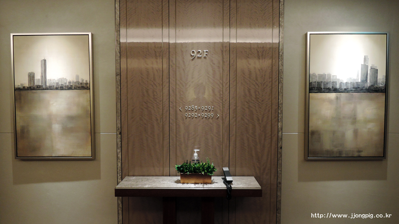 호텔 리셉션이 있는 로비는 79층이다. 1층에서 로비까지 연결되는 엘레베이터는 총 4대였고, 버튼을 누르면 대기 시간이 길지 않았는데, 1층에서 79층까지 1분도 안걸리는 초고속 엘리베이터였다.