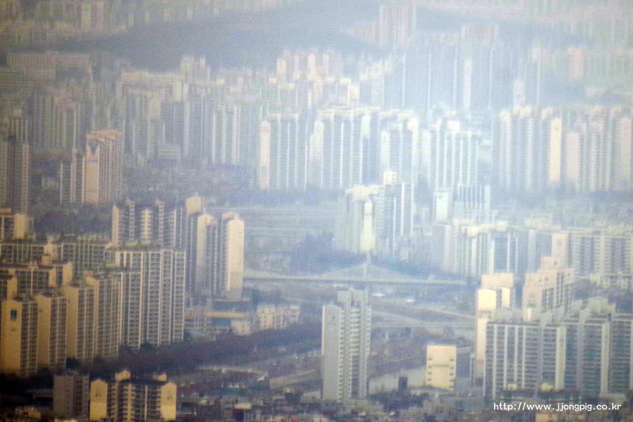 └ 올림픽 공원과 아차산 등이 보이는 뷰인데 별로 흥미가 없었다. - 북쪽 방향