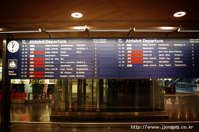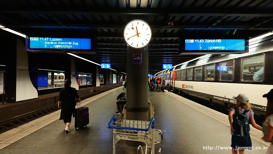 - 취리히 중앙역은 진행방향 맨 앞이 출구와 가깝다.
