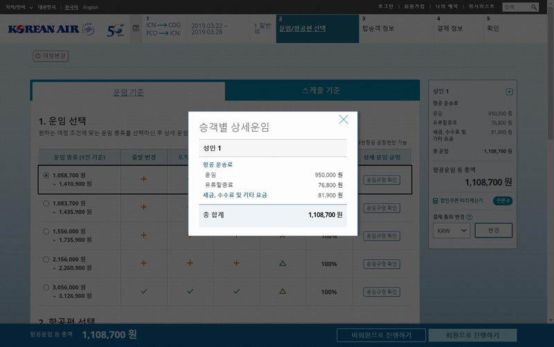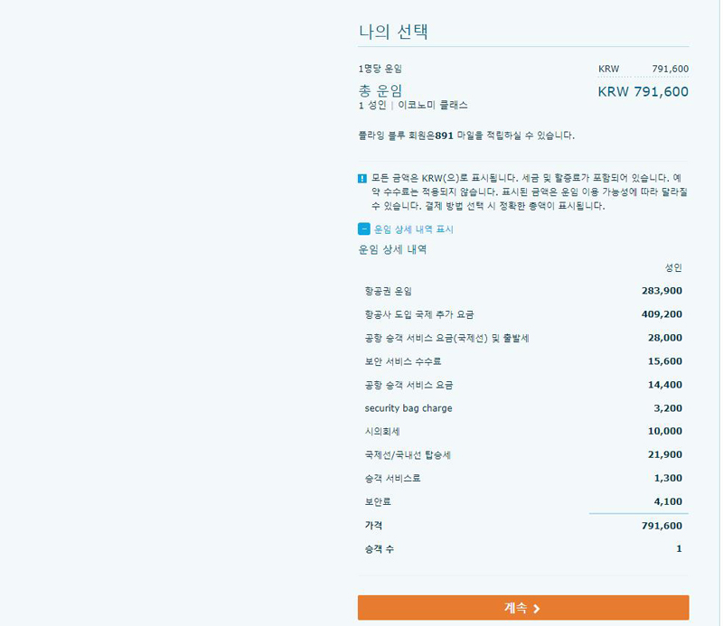 그리고 1월 31일 까지는 특가 판매기간이었는데, 2월 1일되면서 기본 운임이 상승하면서 총액은 인상되었다.