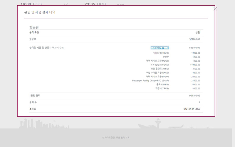 카타르항공은 똑같은거를 캡처한게 아니고, 모든게 변동이 없다. -.-