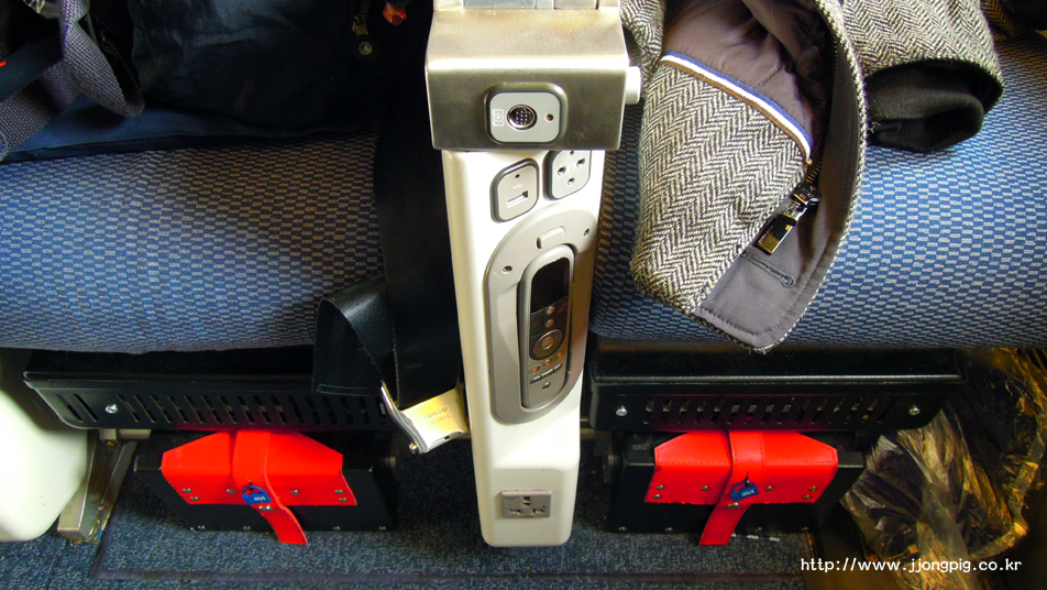 헤드셋을 제공받고, 좌석 하단에 있는 콘센트와 USB 연결까지 가능해서 편하게 이용이 가능했다.
