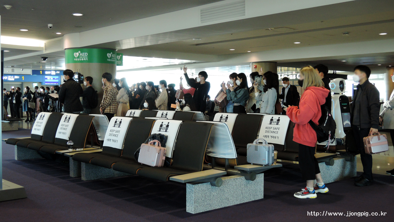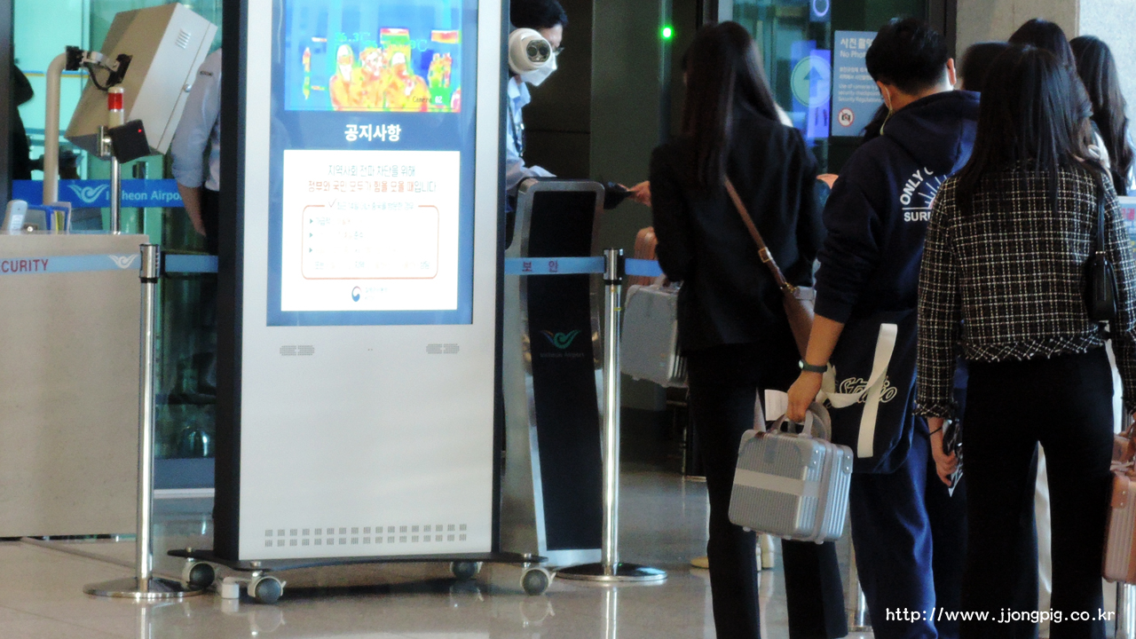 인천공항은 이미 보안검색대 이전부터 열화상기를 통한 체온측정을 진행하고 있어서 김해/김포공항과는 차이를 보인다.