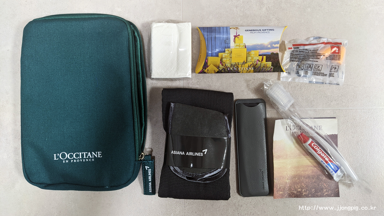 아시아나항공은 파우치 형태의 트레블키트, 국내선 50% 할인쿠폰, 기내면세 할인권, 볼펜을 자사 쇼핑백에 담아서 제공했다.