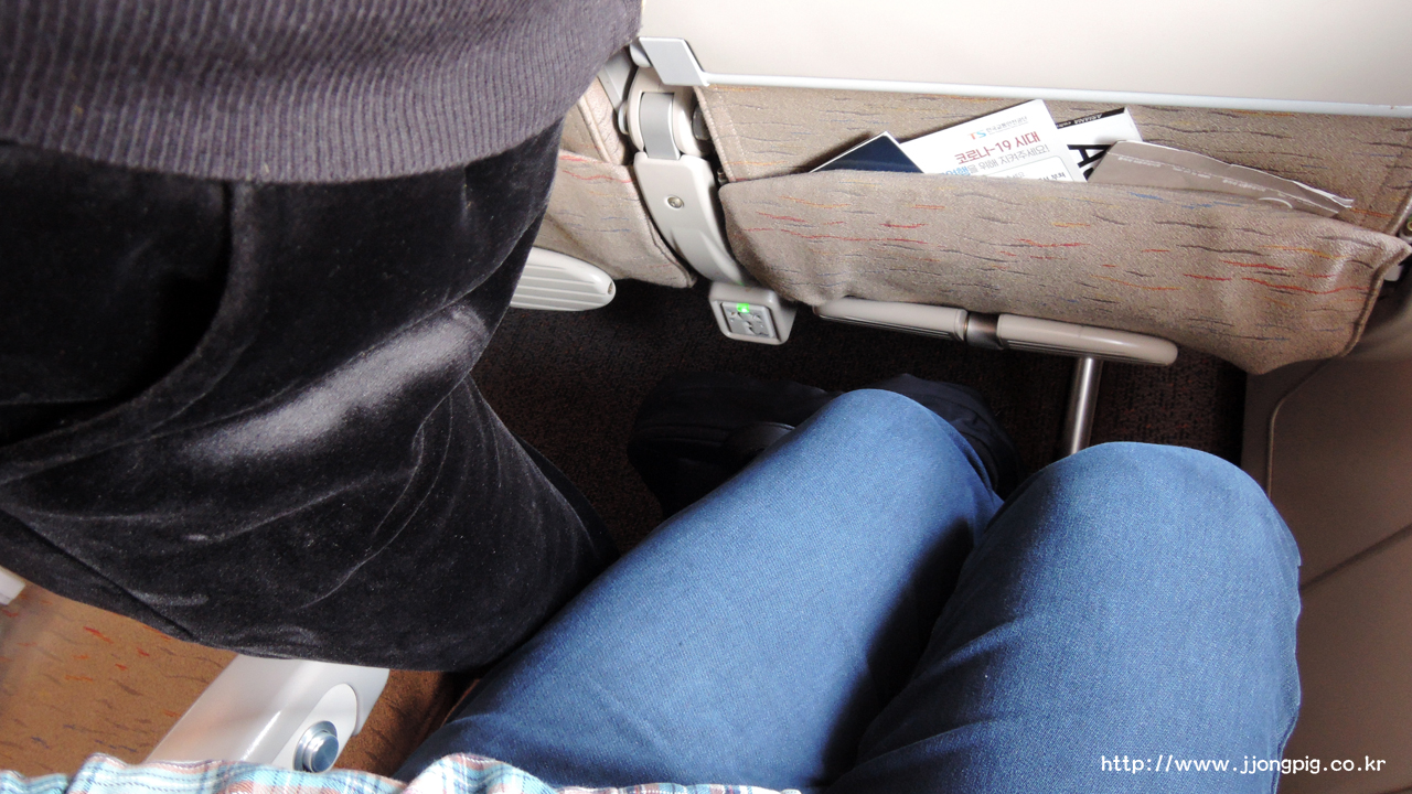 아시아나는 33인치 정도로 볼 수 있는데 확실히 무릎의 앞 부분이 많이 남는다.