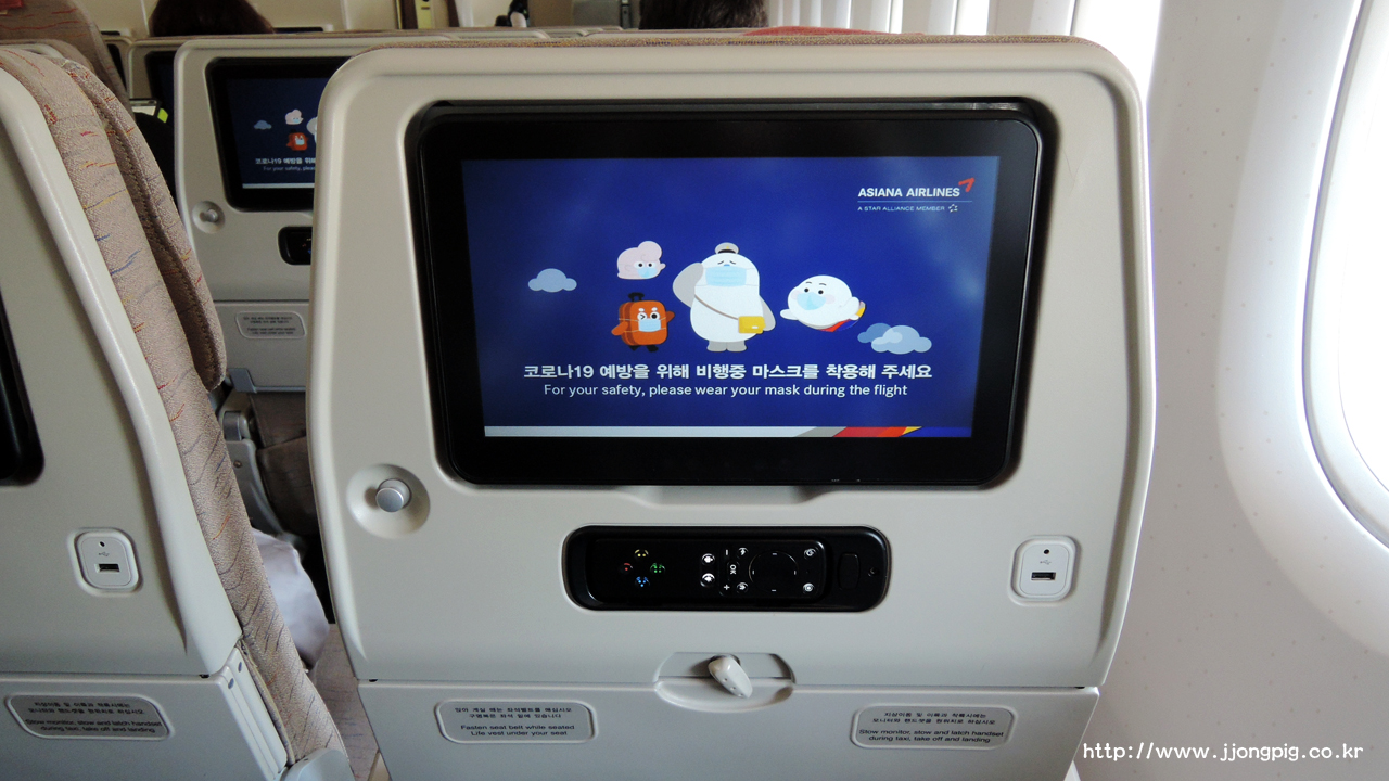 아시아나항공만 AVOD를 갖춘 개인용 모니터가 장착되어 있었다. 기내 에어쇼 형태로 현재 위치가 어디인지를 파악할 때 조금 도움이 되었다. 다만 바깥 풍경을 바라보는 부분은 이착륙 때를 제외하고는 의미가 없었던것 같다.