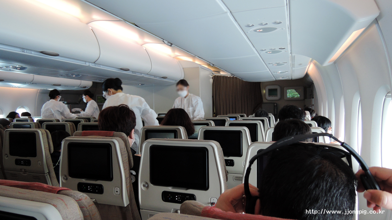 기내식을 제공했던 에어부산과 아시아나항공은 모두 기내식 섭취 때만 마스크를 벗도록 했는데, 아시아나항공은 흰색의 방역복?에 고글?을 끼고 제공을 한다. 그런데 평상시에는 기존과 다른점은 없었다. 오히려 기내가 지저분한 느낌만 더 받았다.