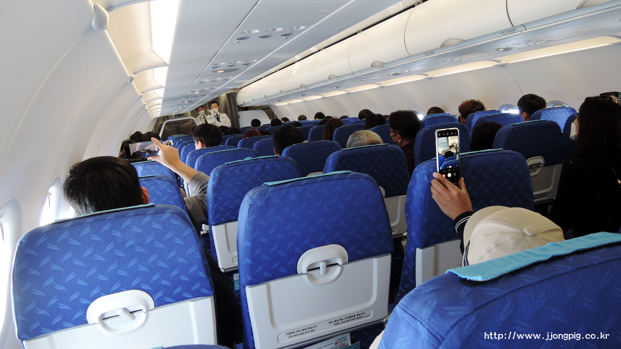 에어부산은 명확하다. 항공 매니아(덕후?)들을 상대로 하다보니 가족단위의 승객들보다는 대중교통(버스/기차 등) 및 비행기를 좋아하겠다 싶은 남학생들이나 30~40대 분들이 많이 보였다.